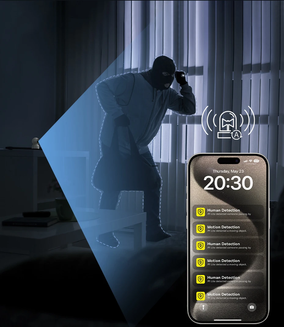 ✔ AI Human & Animal Detection – Stay instantly informed with smart AI that distinguishes between human and pet movement. Receive real-time motion alerts directly to your phone for enhanced safety.